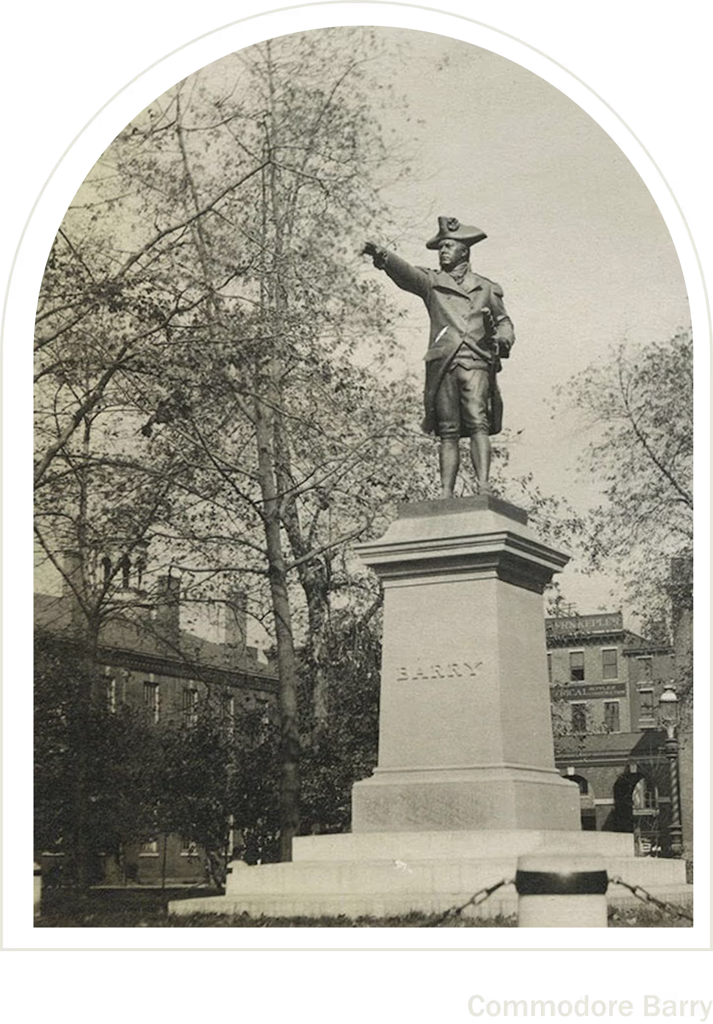 The sculpture of Commodore John Barry, father of the US Navy; the grave of Samuel Nicholas, first commandant of the US Marines; the Tomb of the Unknown Soldier of the Revolution in Washington Square; New Hall, HQ of Secretary of War Henry Knox under Washington; Betsy Ross House; the planned site for a reconstructed Tun Tavern, where Marine Corps troops were first recruited; the City Tavern, where Paul Revere arrived twice on his horse.